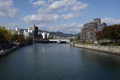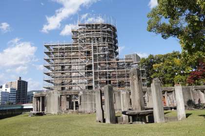 原爆ドームを撮影しました。補修工事中なので、少し残念な姿です。