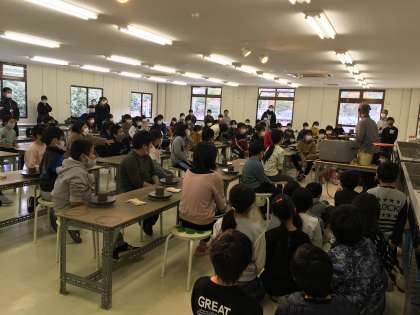 陶芸の説明を真剣に聞いています。