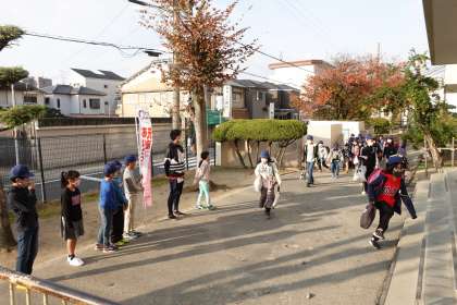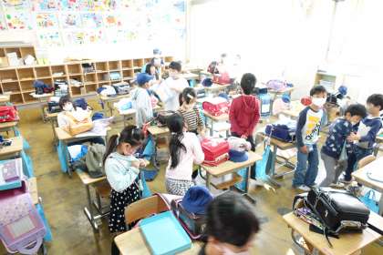 写真は朝の準備をする2年生です。