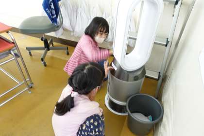 新型コロナ対策補助金で、各クラスに設置させていただきました。かなり大型で、教室のどこに置こうか色々検討中です。子どもたちは興味津々です。5年生は、この形が「いかリング」に見えるそうです。