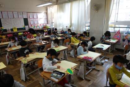 図工の授業です。楽しそうです。