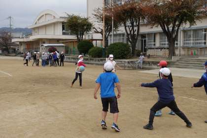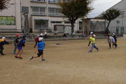 グラウンドで遊ぶ子どもたちです。