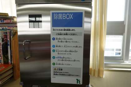 本の除菌装置が届き、早速使用させていただいています。1年生が図書室を使用していましたが、1年生には電子レンジに見えるみたいです。