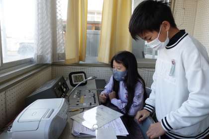 朝の放送です。今日からアナウンスは、後期放送委員の皆さんにバトンタッチです。初めての放送に少し緊張気味でしたが、とても上手にアナウンスをしてくれました。これからも頑張ってください。