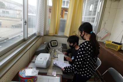 朝の放送です。今日の担当放送委員さんは初めての放送でとても緊張したそうですが、上手に英語でアナウンスをしてくれました。素晴らしかったですよ。