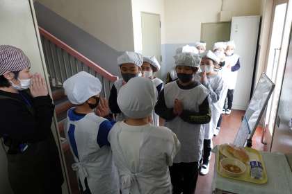 今日の給食係さんを色々撮影しました。