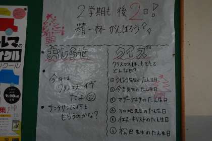 5年生学年フロアーの掲示板です。今日のクイズもなかなか難しいですね。