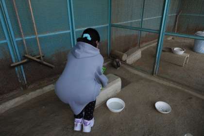 寒い中ですが、飼育委員さんがウサギの世話をしてくれています。