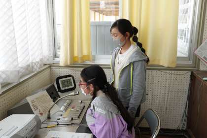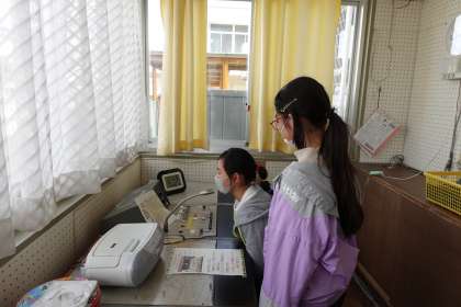 今日担当の給食委員さんです。カレーシチューとエビフライについて分かりやすく説明してくれました。