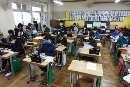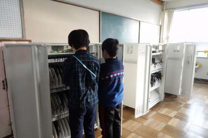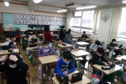 5年生の様子です。急に朝の雰囲気が変わってきました。自分のタブレットを取りに行って、今日の予定確認から始まります。
