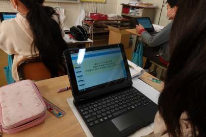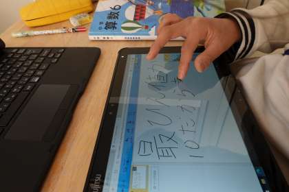 タブレットを使って各グループでノートを交換し合い、それぞれの考え方を深めました。