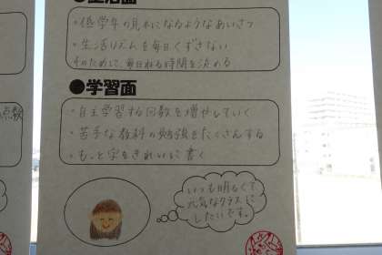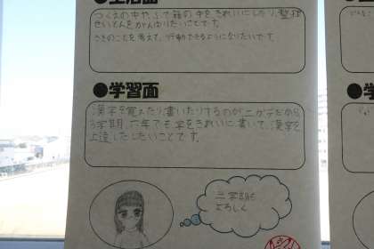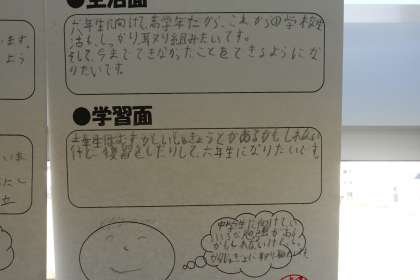 5年2組の廊下に掲示されている3学期の目標です。1組と同じように、6名分紹介します。