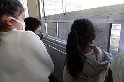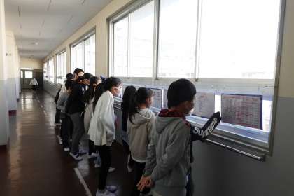 氷野小では3年生以上の「自学ノート」を何名か分ずつ図書室前の廊下に掲示しています。掲示されたノートを見てお互いの励みになり、より自主学習がより進むことを目的としています。今日は4年生が休み時間に一生懸命見学していました。