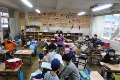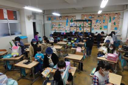 朝の準備をする2年生です。