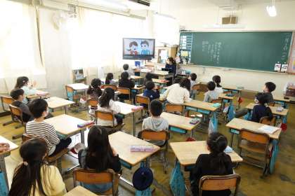 映像を見ながら、今日は「牛肉」について予習をしています。1月29日(金)の給食は、希少な大阪産牛肉を使った牛丼の予定です。コロナ禍で消費が減っている大阪府の食材を救うための補助金交付事業による給食です。