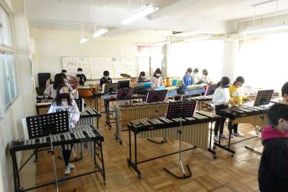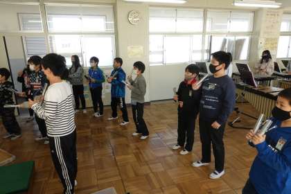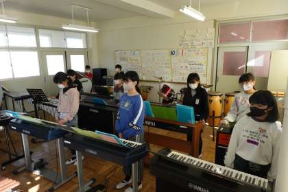 5年1組は音楽です。校長先生も、今日は少しだけピアノを弾かせてもらいました。