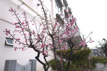 「正門前の梅の花がとてもきれいなので、ぜひホームページにアップしてください。」と、2年生からリクエストがありました。どうやら、おうちの人からのうれしいお願いのようです。