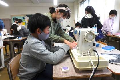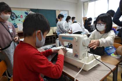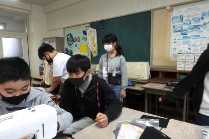 5年2組の家庭科です。