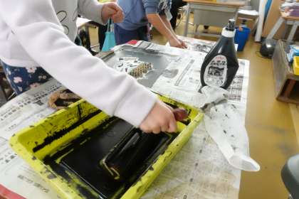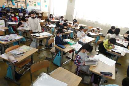 2年2組です。出来上がった素晴らしい作品を見せてくれました。