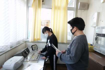 朝の放送準備をする放送委員さんです。後期の活動にも慣れてきたそうです。これからも頑張ってください。