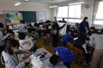 5年3組の家庭科です。