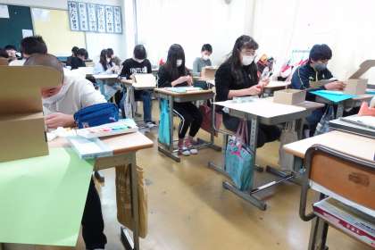 6年3組の図工です。自分の将来について、紙粘土を使い形にしていくそうです。