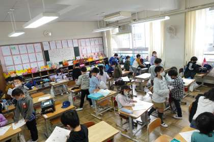 写真は朝の準備をする1年1組です。1年2組は更衣中で撮影できませんでした。
