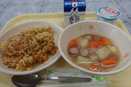 今日の献立は、パエリア、ポトフ、ヨーグルト、牛乳です。今日の献立は、牛乳以外すべてカタカナですね。50年前にはなかったメニューばかりです。