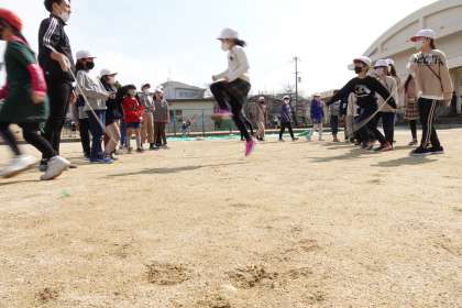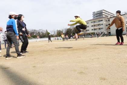 4年生は、クラス対抗大縄跳びを練習中です。