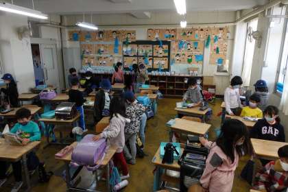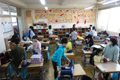朝の準備をする2年生です。