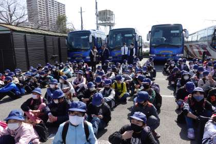今日はたくさんの学校がひらパーに来ていました。南郷小学校の6年生も偶然来ていました。4月から、同じ南郷中学校で学ぶ仲間になりますね。