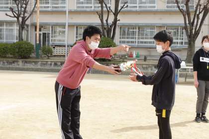競技が終わりました。優勝は6年1組です。おめでとうございます。