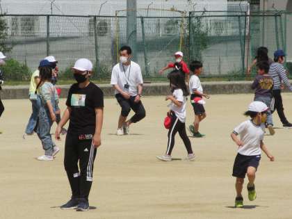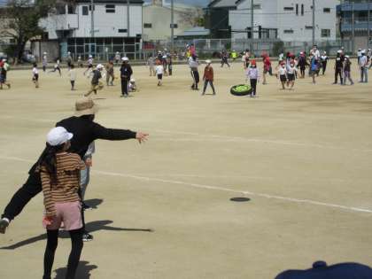 教務の先生も、たんぽぽの先生も運動場で子どもたちと一緒に遊んでいます。