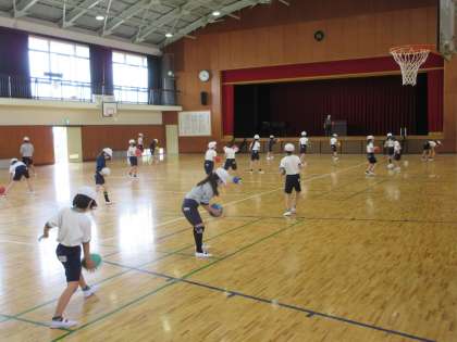 体育館体育では換気を徹底しています。ドアもすべて開放した状態です。