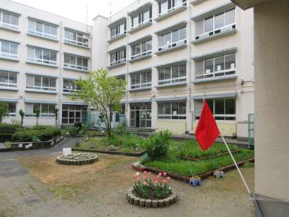 今日は、雨上がりのため運動場に水たまりがあります。中庭に赤い旗がたっている時は、「運動場が使えません」の合図です。休み時間になり、各教室から中庭を見る子どもたちはきっと残念に思うことでしょう。明日は晴れることを期待しましょう!