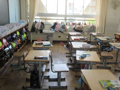 3年2組の教室ですが3人隠れています。楽しそうです!