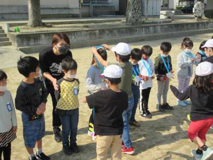 2年生のお兄さんお姉さんも大活躍。優しい言葉をかけながら1年生にメダルをかけています。