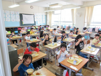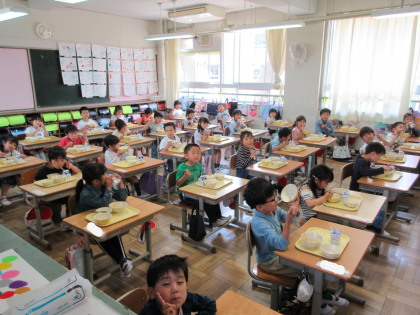 4月に比べて、給食の準備がとっても早くなりました。1年生、日々進歩していますね。
