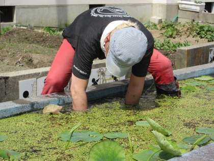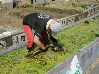 今年度、氷野小学校では食育の一環として、れんこんを育てることになりました。