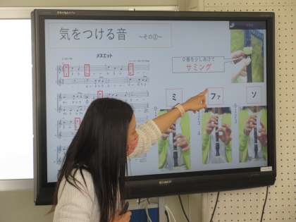 音楽室では、吹くことはできませんので、それぞれ指の運びのみを確認します。先生が用意している動画(下の写真にあります)はとても親切で「とっても親切な宿題」だなと思いました。