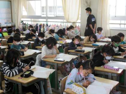 3年1組です。学習の最後は、本時をふりかえっています。本時をふりかえり、自分の思考をまとめる時間でもあるため、とても静かな時間となります。