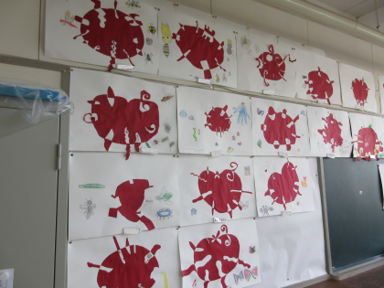 2年生の男の子が、校長先生に図工で取り組んだ作品について説明してくれました。