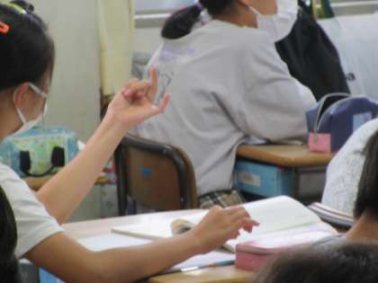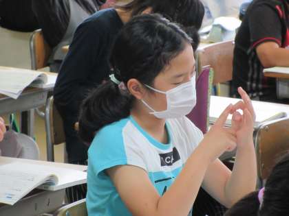 国語で「短歌」の学習をしていました。子どもたちは指を使いながら、頭の中で描いています。素敵な短歌ができますように。