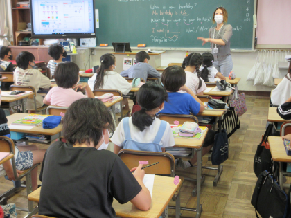 5年生の外国語です。授業支援員さんを活用して、より専門的かつ興味関心が高まる学習に取り組んでいます。