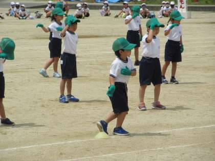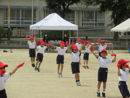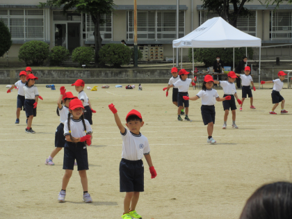 赤と緑の帽子と手袋がとっても似合っていて、マリオのようにかっこよく、かわいく踊っていました。大流行のBTS「Dynamite」は難しいステップもあった中、ノリノリで一つ一つのポーズを決めていました。おうちの人も曲にのって見惚れていましたね。初めての運動会(体育参観)だった1年生、練習の時から本当によくがんばりました!1年生、また大好きになりました!