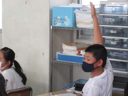 写真は、その6年生です!さっそく算数の学習モード全開です。このあたりの「切り替え」「メリハリ」があるのが本校の強みです!