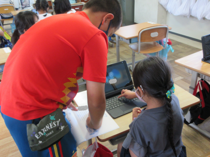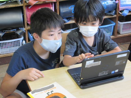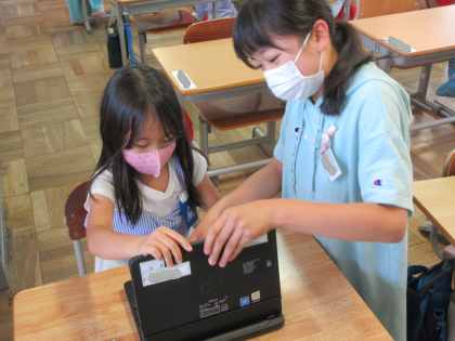 今日は、それぞれ別のクラスの1年生と6年生がタブレット端末の操作について学習しました。