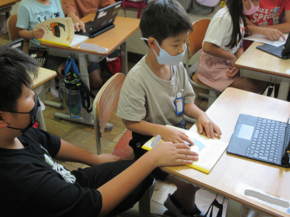 いわゆる「きょうだい学年」の取組みですが、今日は本当のきょうだいで組んでいるペアもありました。とても微笑ましい光景でした。