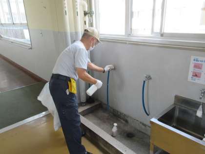 トイレを中心として校内の様々な個所を消毒してくださっています。本当にありがたいです。
