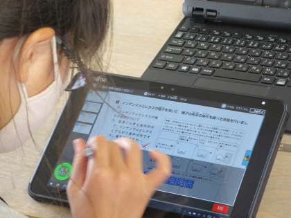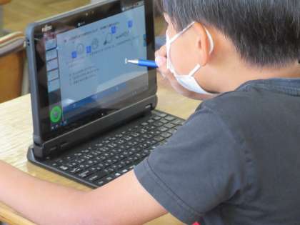このクラスは、理科のテストの時間でしたが、テストが終わった後の20分程度を使って、それぞれがタブレット端末の中にあるドリル学習に自分のペースで取り組んでいました。